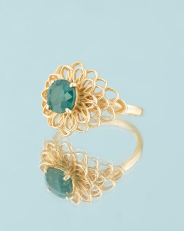 Inel Unicat THE FLOWER OF WISHES cu Grandidierit Natural Rar, Aur Galben 14K