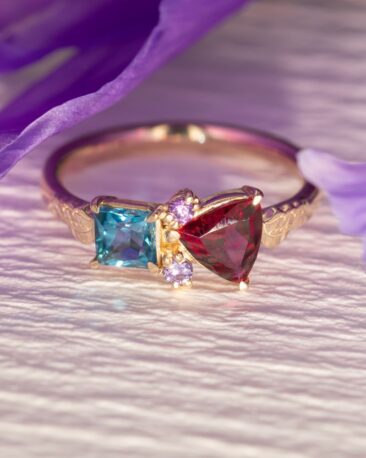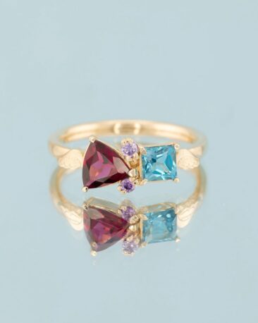 Inel Unicat TRUE COLORS cu Granat Rodolit Natural, Topaz si Ametiste Naturale, Aur Galben 14k
