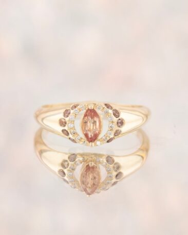 Inel Unicat FLAME OF LOVE cu Spessartit (Granat Mandarin) si Diamante Naturale, Aur Galben 14K
