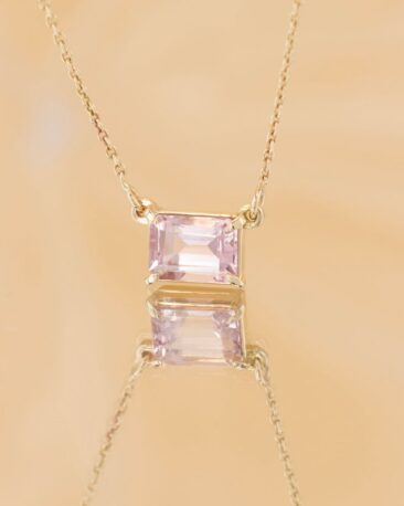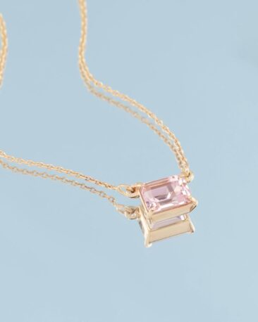 Colier Unicat ROSY LIGHT cu Morganit Natural la baza gatului, Aur Galben 14K