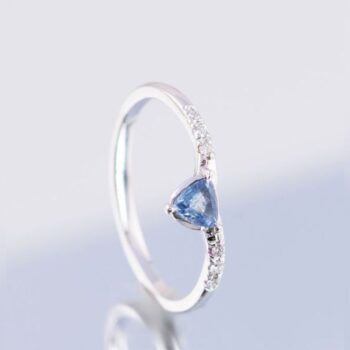 Inel de logodna BLUE MOON cu Safir Central Natural si Diamante Naturale, Aur Galben 14K