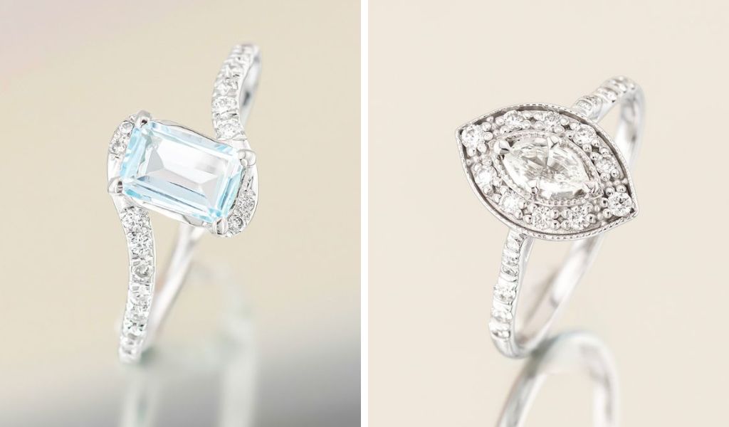 1. Aur alb – elegant, modern, potrivit in combinatie cu pietre in nuante reci
