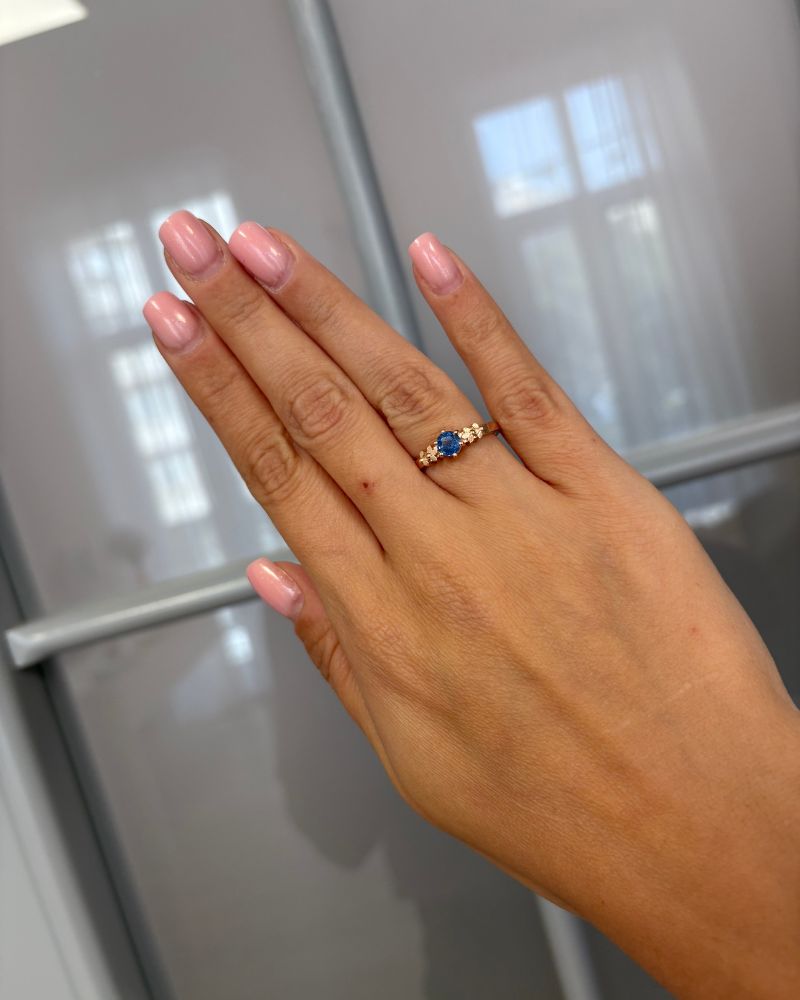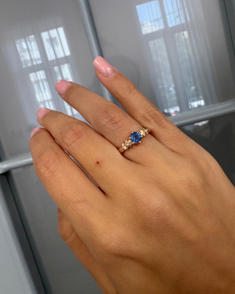 Inel BLUE FLOWER cu Safir Natural Albastru, Aur Roz 14K