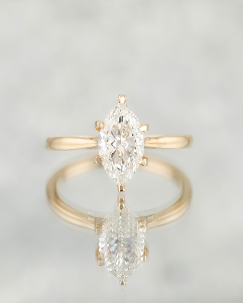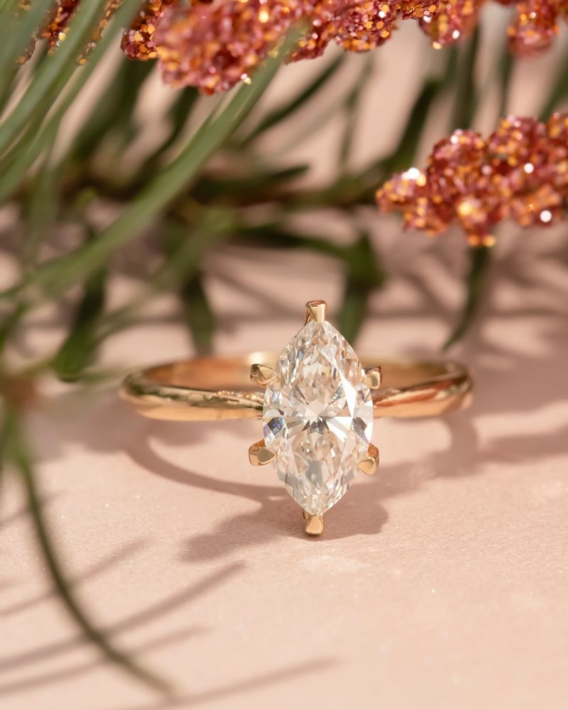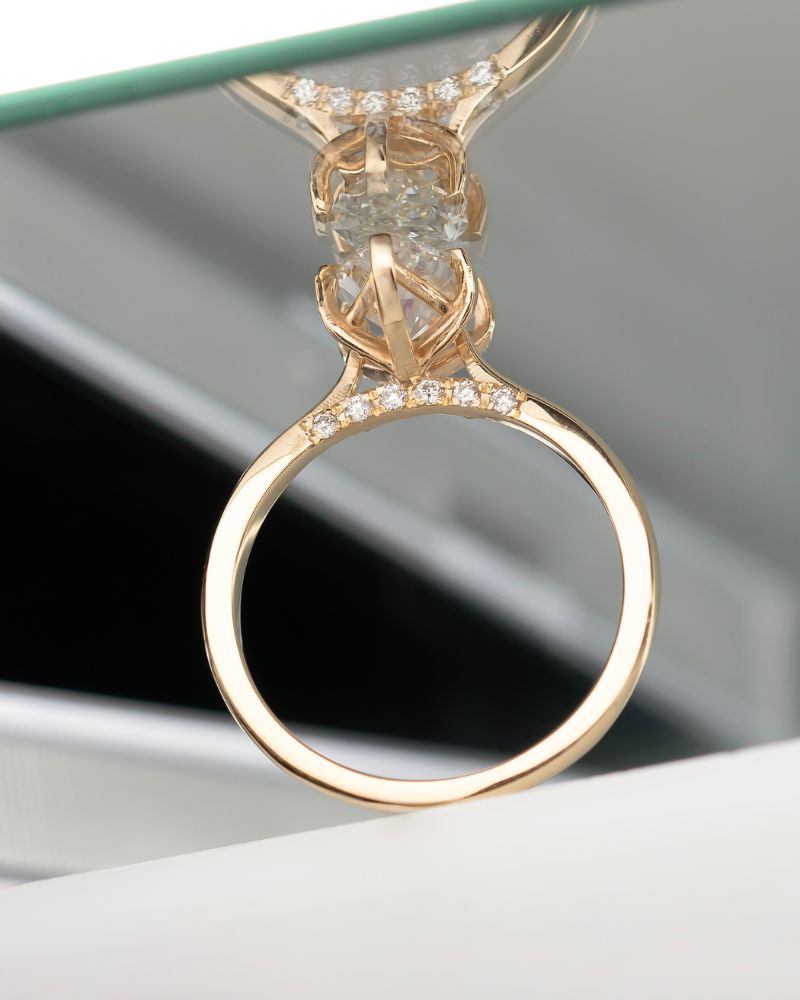 Pe arcada inelului sunt montate diamante mici lab-grown, un detaliu care va fi observat doar de posesoarea inelului de logodna.