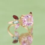 In centrul design-ului se afla un kunzit natural de 5.7 ct, cu taietura octogon, limpede si luminos, o piatra a claritatii emotionale si a autenticitatii.