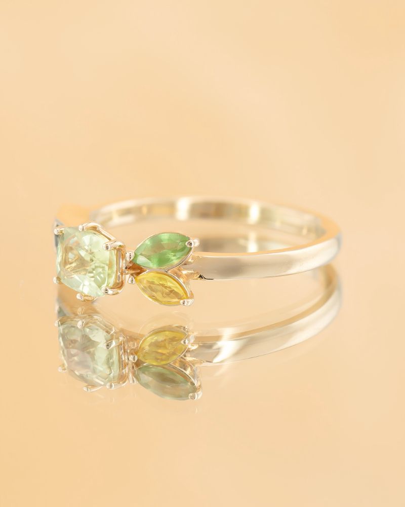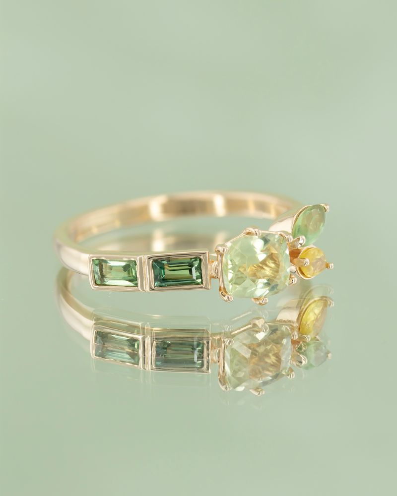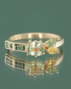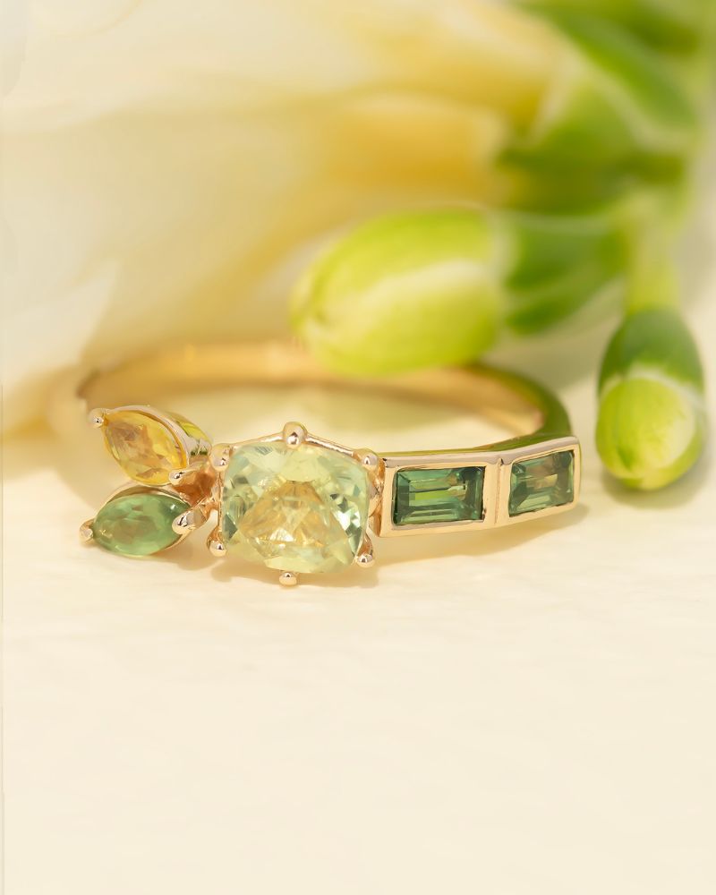 ANATOLIAN WHISPER este o alegere rara pentru cei care cauta un inel aniversar cu adevarat diferit. Piesa este construita in jurul unui zultanit natural – o piatra spectaculoasa, apreciata pentru capacitatea sa de a-si schimba subtil nuanta in functie de lumina, de la tonuri calde de verde la reflexii aurii. Aceasta versatilitate il transforma intr-un simbol perfect al unei relatii care evolueaza si se reinventeaza in timp. Alaturi de safirele naturale atent alese, compozitia devine echilibrata si sofisticata, ideala pentru femeile care iubesc bijuteriile cu poveste.