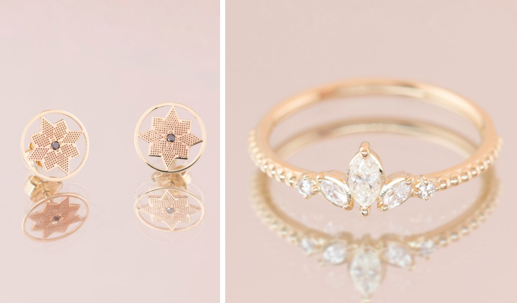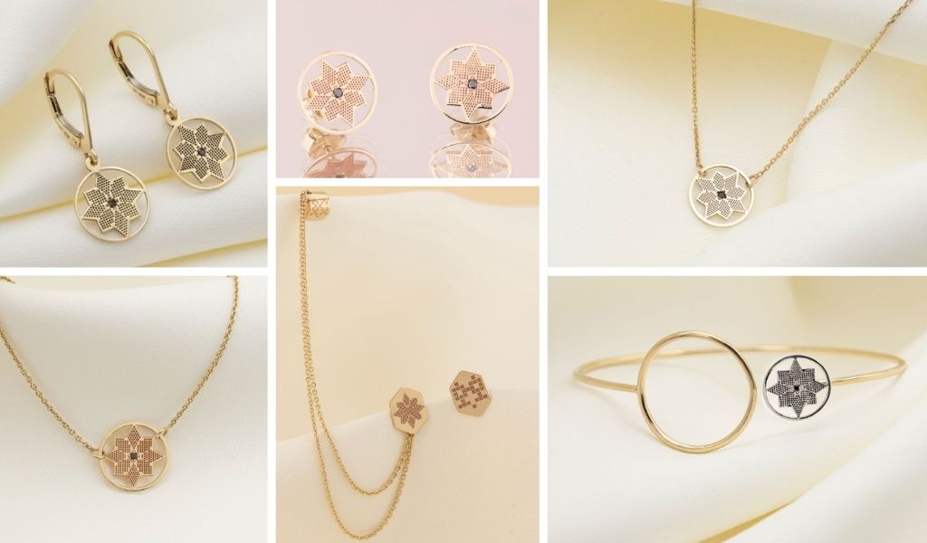 Floarea de mar, floarea-soarelui sau alte simboluri florale regasite in arta populara sunt transformate in bijuterii delicate din aur. Ele transmit ideea de renastere si frumusete.