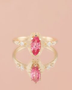 Inel HERUVIM cu Spinel Natural Central si Diamante Naturale, Aur Galben 14K