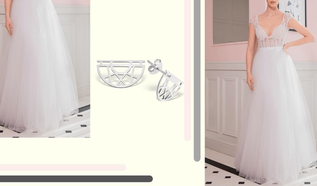 Rochia infoiata din tulle fin nu se demodeaza niciodata. Ne-am inspirat din acea rochie cu dantela brodata si o stralucire suava data de glitterul aplicat discret pe tulle. Noi iti recomandam s-o asortezi cu cerceii din aur alb, HALF MOON si cu colierul HALF MOON din acelasi set, cu decupaje elegante in ton cu rochia ta de mireasa.
