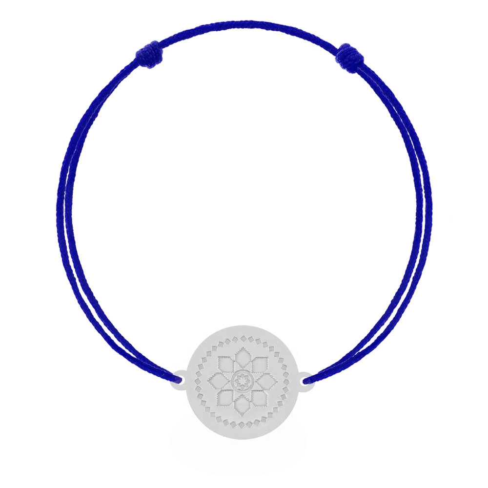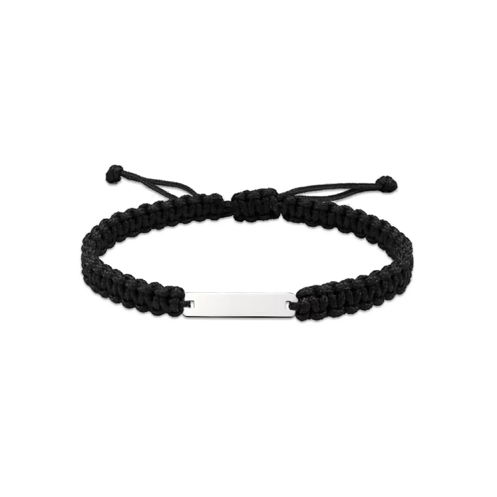 Bratara din argint 925 pe snur impletit. Pe placuta din argint se pot grava simboluri reprezentative pentru tine si poti alege nuanta snurului dintr-o paleta variata.
