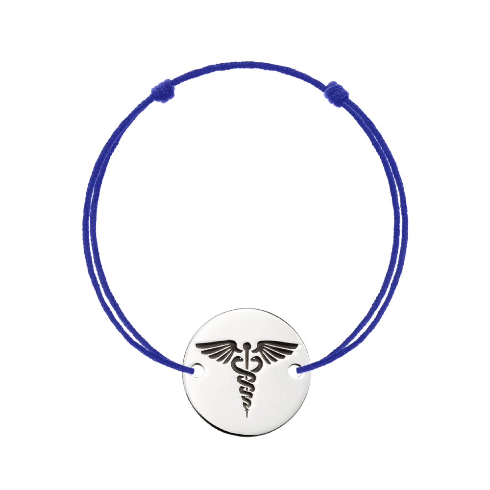 Simbolul medical universal intr-o bratara din argint 925 pe snur din matase.