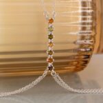 Body chain-urile IONA au cate 3 randuri de lantisoare fine ce imbraca elegant zona soldurilor, iar in partea de sus un pandantiv cu 7 turmaline naturale, fiecare piatra fiind unica si plina de vitalitate.