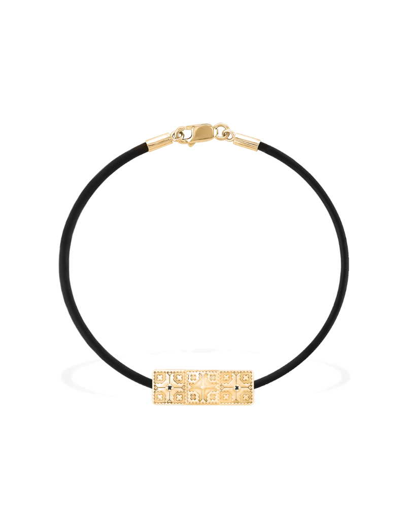 TRADITIO este o bratara barbateasca din aur care imbina doua lumi: simbolurile romanesti creionate cu precizie si liniile moderne, minimaliste, pe care barbatii de azi le poarta fara efort.