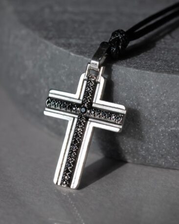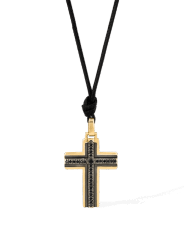 Pandantiv Barbatesc VERITAS cu Diamante Negre Naturale, Aur Galben 14K si Rodiu Negru