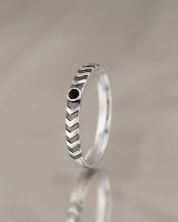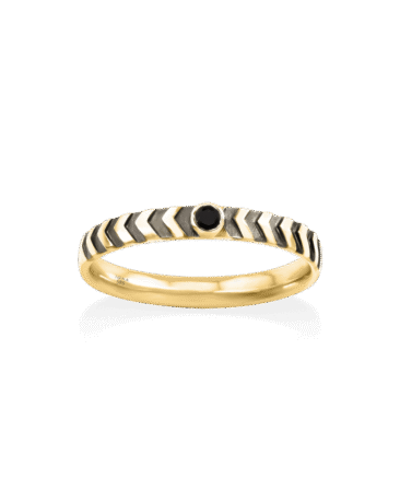 Inel – Verigheta Barbateasca PRIMUS cu Diamant Negru Natural, Aur Galben 14K si Rodiu Negru