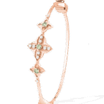 Daca iti plac bijuteriile delicate, dar rezistente si cu personalitate, te vei regasi in ritmul floral al bratarii fixe IASOMIE DE PRIMAVARA. O compozitie formata din 3 flori de iasomie stilizate cu diamante naturale si safire verzi autentice, alese pentru claritatea lor si pentru nuanta proaspata, atat de luminoasa.