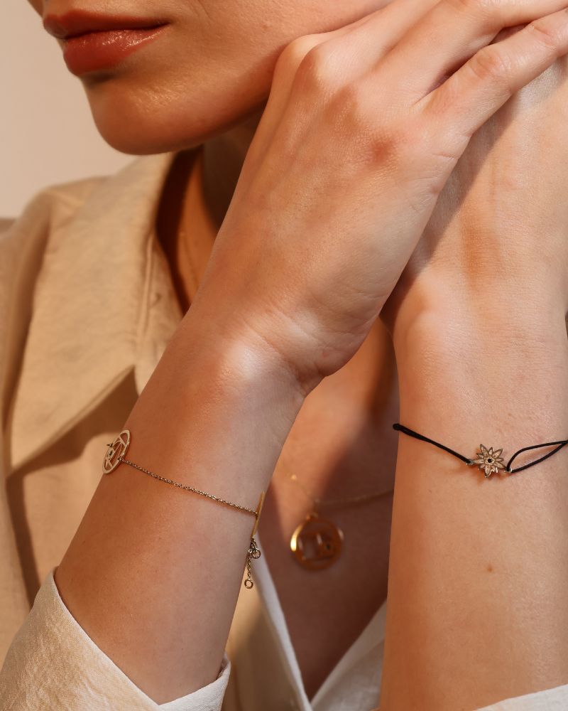 Bratara FLOARE DE COLT Aur Galben 14k cu Diamant Negru, pe snur