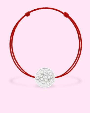 Am surprins floarea de cires intr-o forma delicata din argint si am asezat-o pe un snur rosu ajustabil ca s-o porti cu tine tot anul. Un simbol al feminitatii, al inceputurilor si al traditiei de 1 Martie pastrate pe mai departe.