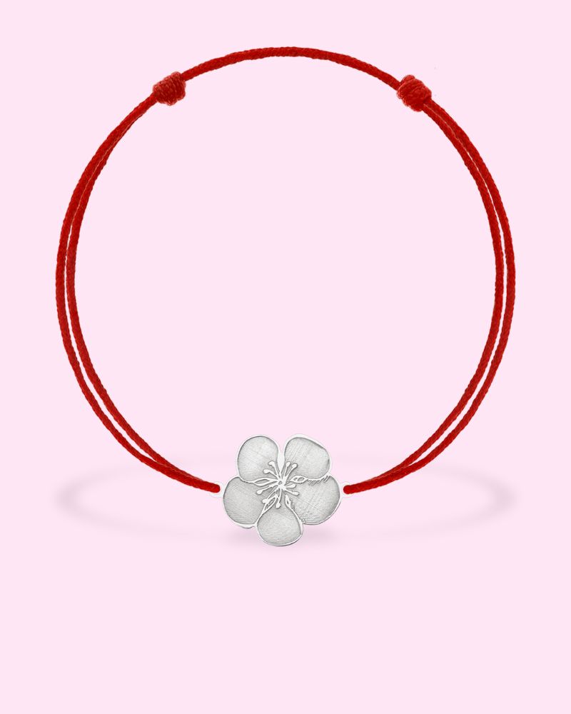 Am surprins floarea de cires intr-o forma delicata din argint si am asezat-o pe un snur rosu ajustabil ca s-o porti cu tine tot anul. Un simbol al feminitatii, al inceputurilor si al traditiei de 1 Martie pastrate pe mai departe.