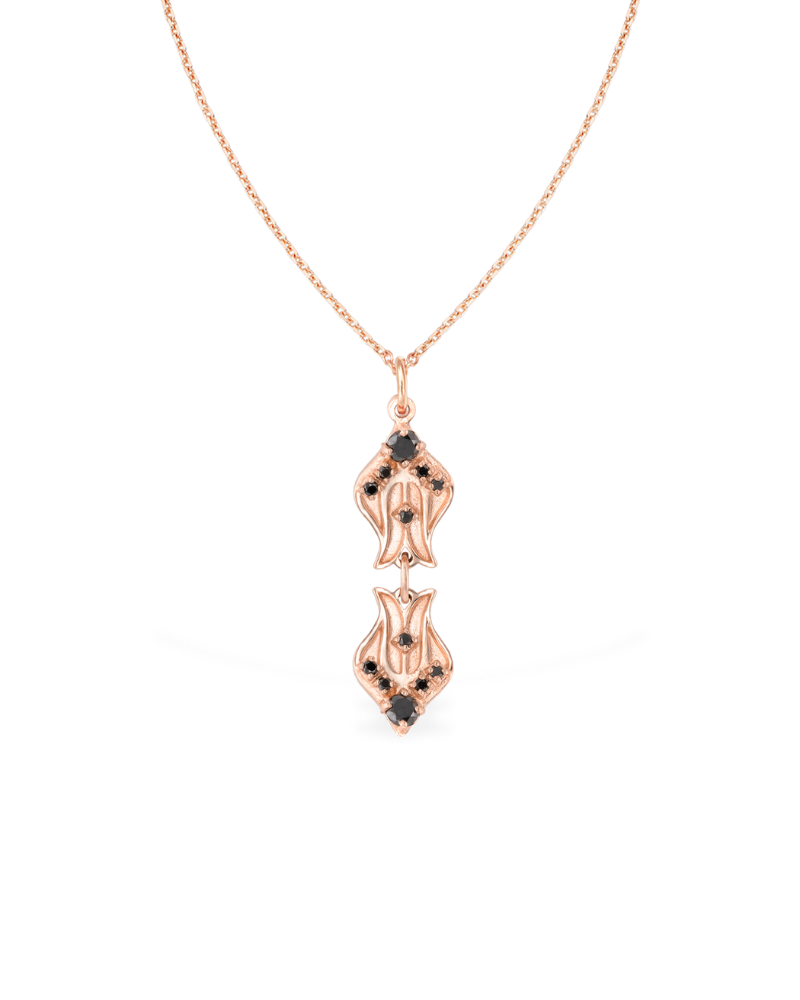 Cand alegi acest colier, alegi mai mult decat un design floral reinterpretat – alegi un simbol al feminitatii puternice si al elegantei care nu cere o validare. Laleaua neagra este o floare asociata cu misterul, curajul si unicitatea, iar forma ei delicata, reinterpretata in stil Art Nouveau, pune in valoare frumusetea detaliilor fine.
