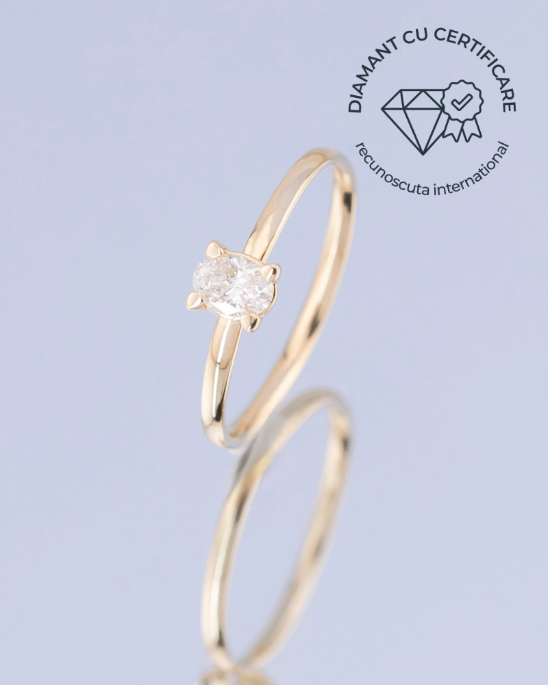 O alternativa la inelul de tip solitaire, acesta are montat un Diamant Natural Oval de 0.25 ct si cu proprietati gemologice foarte bune. De ce am ales un diamant oval, in locul clasicelor diamante rotunde?
