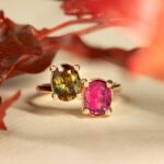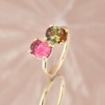 Am unit doua lumi cromatice fascinante intr-un singur inel: inelul CONVERSATION STARTER. Andaluzitul e o piatra cu efect de pleocroism, in functie de unghiul din care o privesti afisand culori si nuante diferite, iar Turmalina are o taietura fancy cu fatete unghiulare, care pun in valoare rozul vibrant al pietrei.