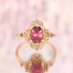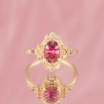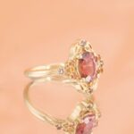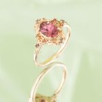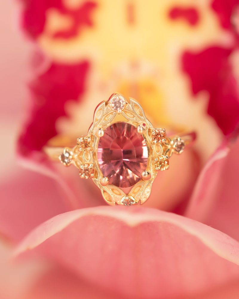 Montura este decorata cu detalii florale fine si Safire Naturale in doua nuante calde, completand perfect turmalina centrala. Rezultatul este o compozitie eleganta si echilibrata, care imbina feminitatea delicata cu forta interioara a pietrelor pretioase.