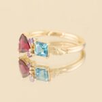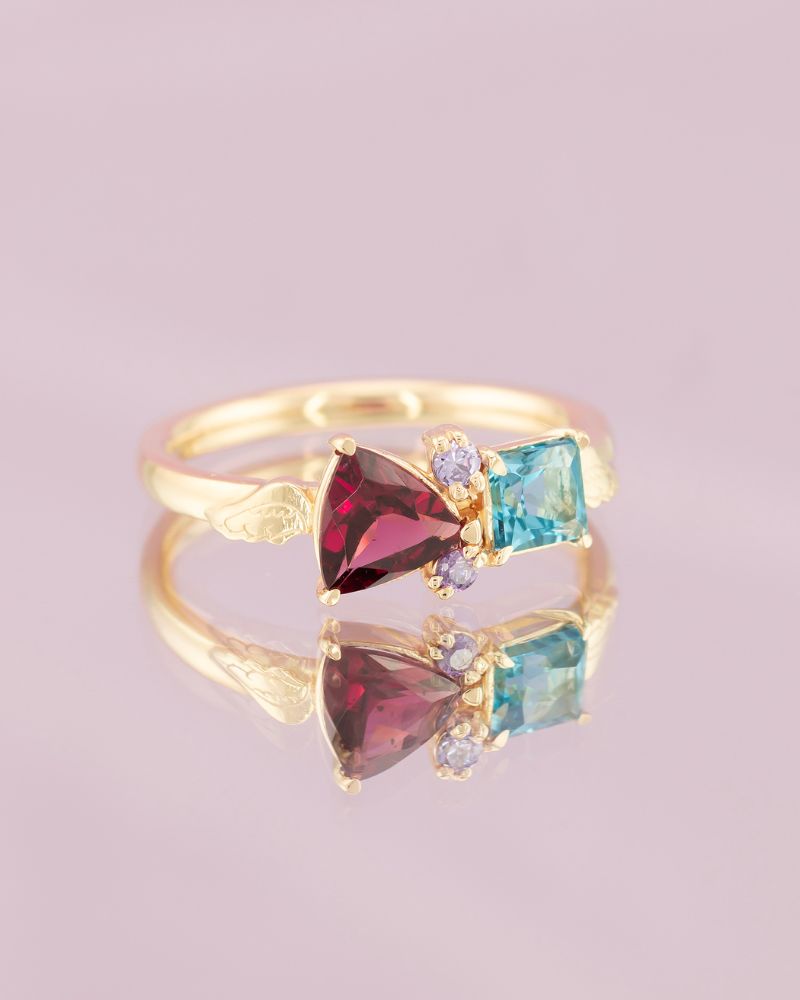 Realizat din aur galben 14K, in inelul TRUE COLORS aducem impreuna pietre naturale cu personalitati diferite, intr-un echilibru al culorilor si formelor.