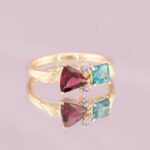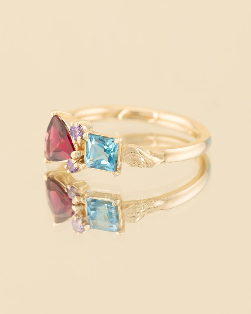 Inel Unicat TRUE COLORS cu Granat Rodolit Natural, Topaz si Ametiste Naturale, Aur Galben 14k