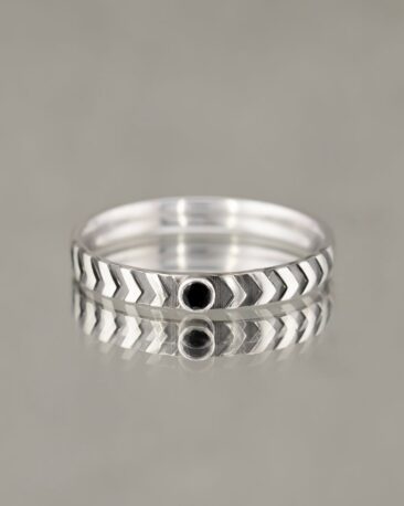 Inel – Verigheta Barbateasca ARMATURA cu Diamante Naturale Negre, Aur Alb 14K