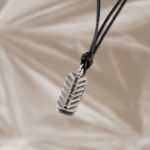 Snurul din piele neagra ii da pandantivului un aer urban si minimalist, facandu-l mai usor de purtat zi de zi. PRIMUS este o piesa care se simte atat moderna, cat si arhetipala: un obiect care aduce impreuna geometria clara, metalul pretios si simboluri masculine care tin de curaj si auto-control.