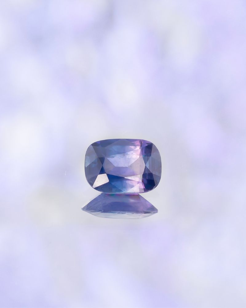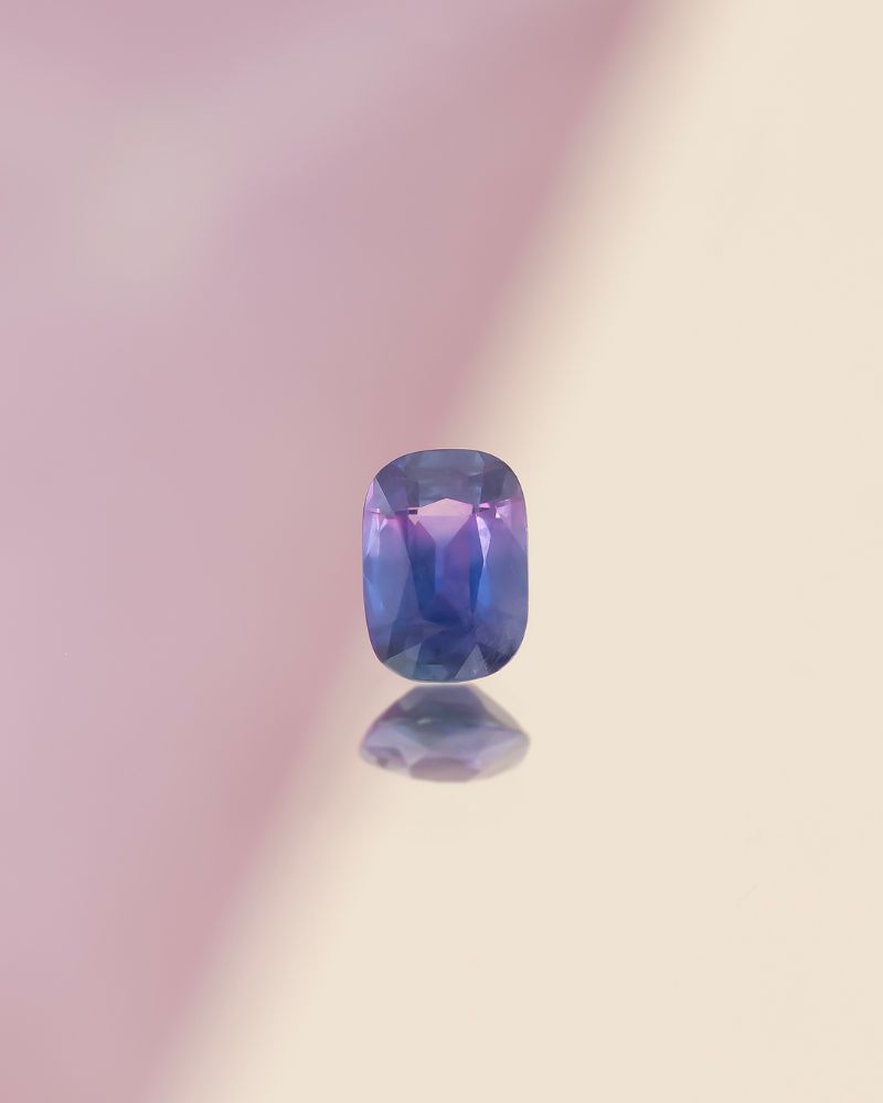 BEAUTY OF KASHMIR este un safir natural care imbina albastrul intens cu nuante de violet, creand o culoare fluida, aproape hipnotica, specifica regiunii Kashmir (India). Taietura cushion evidentiaza jocul de lumina din interiorul pietrei, cu fatete si proportii echilibrate, astfel incat fiecare miscare dezvaluie o alta profunzime si o alta emotie.