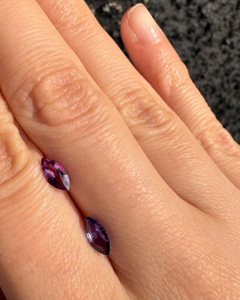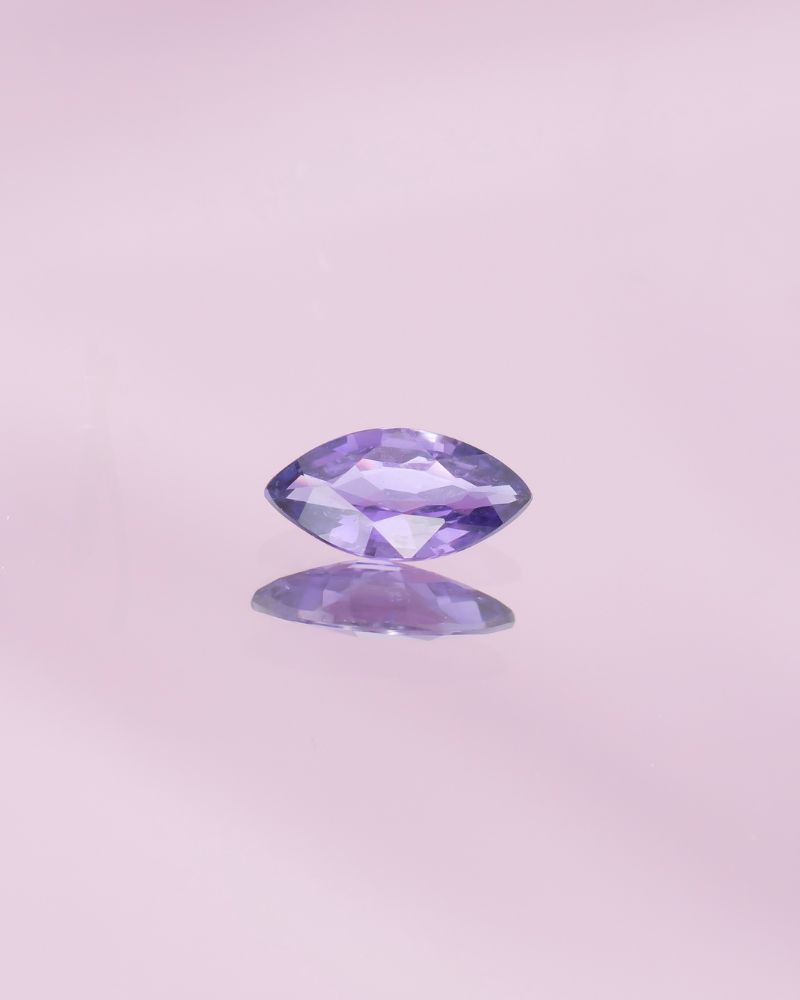 DEEP PURPLE are o culoare intensa si rara, o combinatie de albastru cu purpuriu cu efect magnetic. Nuanta lui nu este evidenta, ci se dezvaluie treptat, in functie de lumina – uneori mai rece, alteori mai calda, cu reflexii care dau profunzime si mister. Taietura marchiza, alungita si precisa, accentueaza acest joc subtil si iti ofera o piatra care pare mereu in miscare, chiar si atunci cand sta nemiscata.