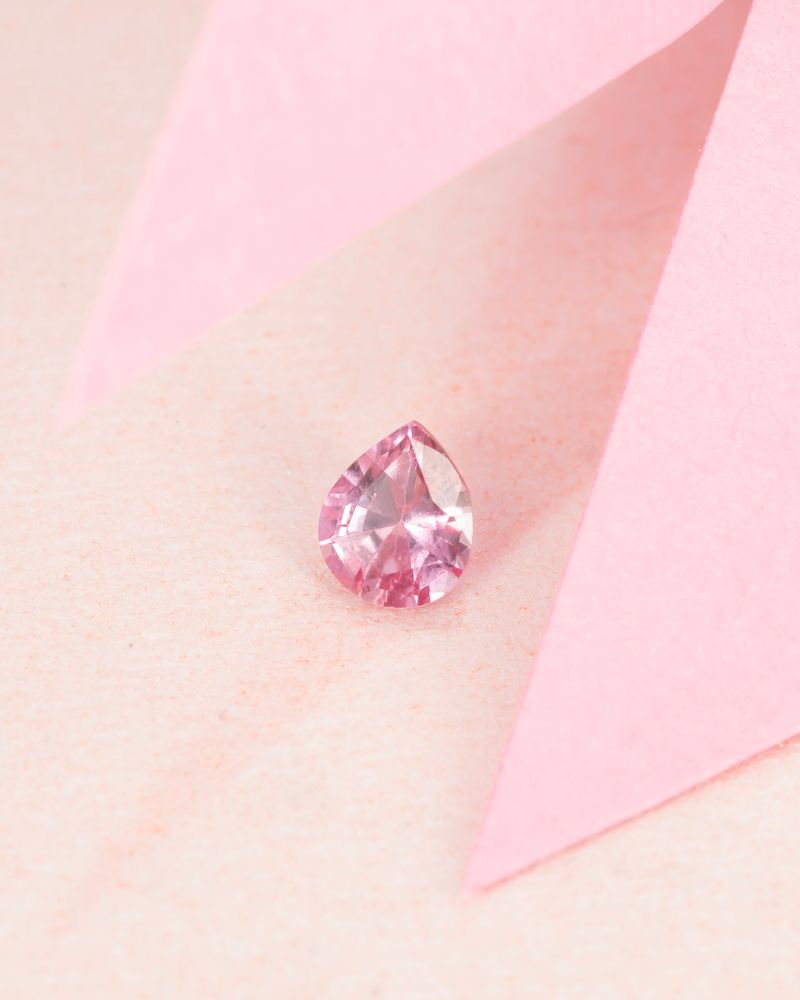 Safirul natural FLORI DE CIRES este poezie vizuala. Ne-a fascinat printr-o nuanta roz deschis, cu tonuri curate, specifice safirelor fine din gama pastel.