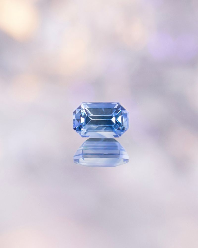 Safirul HOPE poarta in el simbolul increderii si al renasterii. Taietura geometrica de tip octogon scoate in evidenta claritatea pietrei si intensitatea albastrului sau delicat.