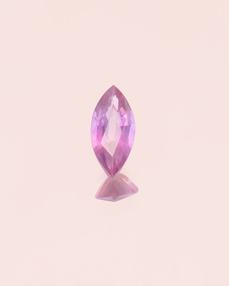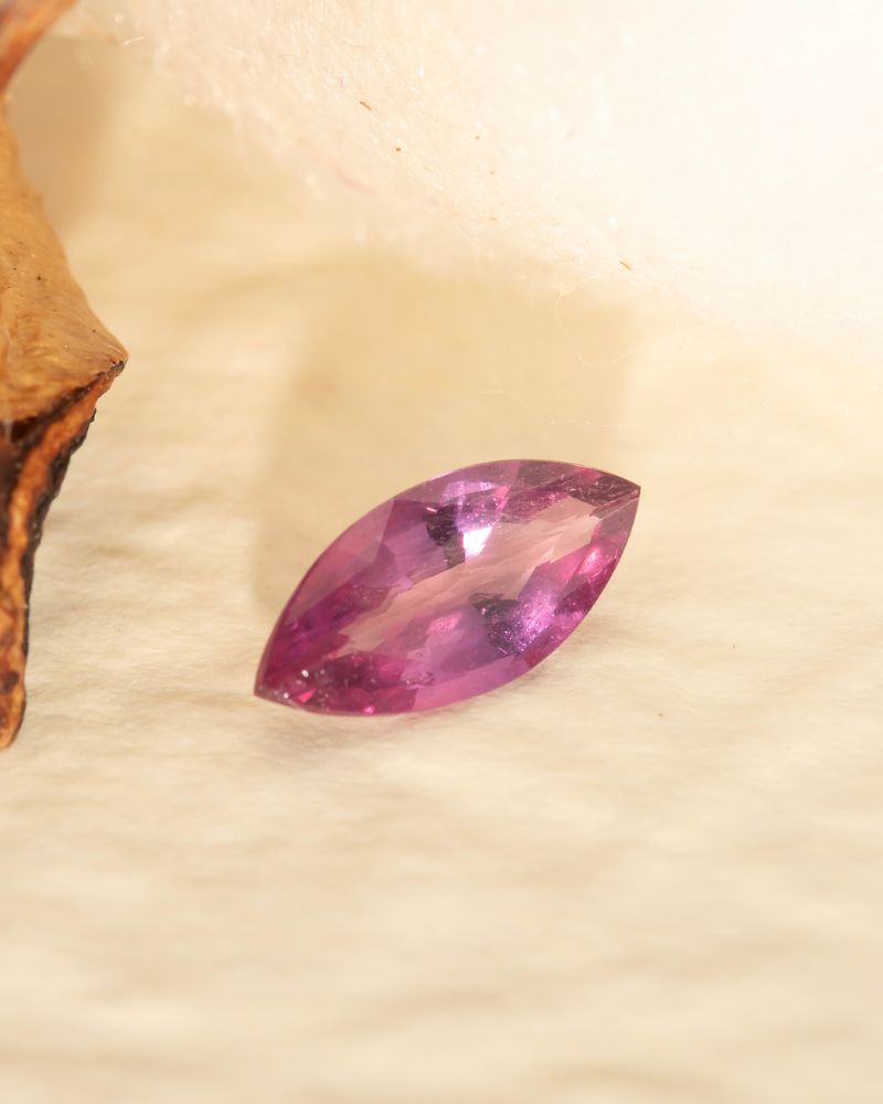 Safirul natural THE ROSE, cu taietura marchiza, are o nuanta roz delicata, cu tonuri curate si luminozitate echilibrata, specifica safirelor fine din zona pastel. Proportiile alungite (7.9 mm lungime) si fatetele bine definite amplifica reflexia luminii pe axa pietrei, creand un efect optic elegant, care alungeste si subtiaza vizual orice design in care este integrata.