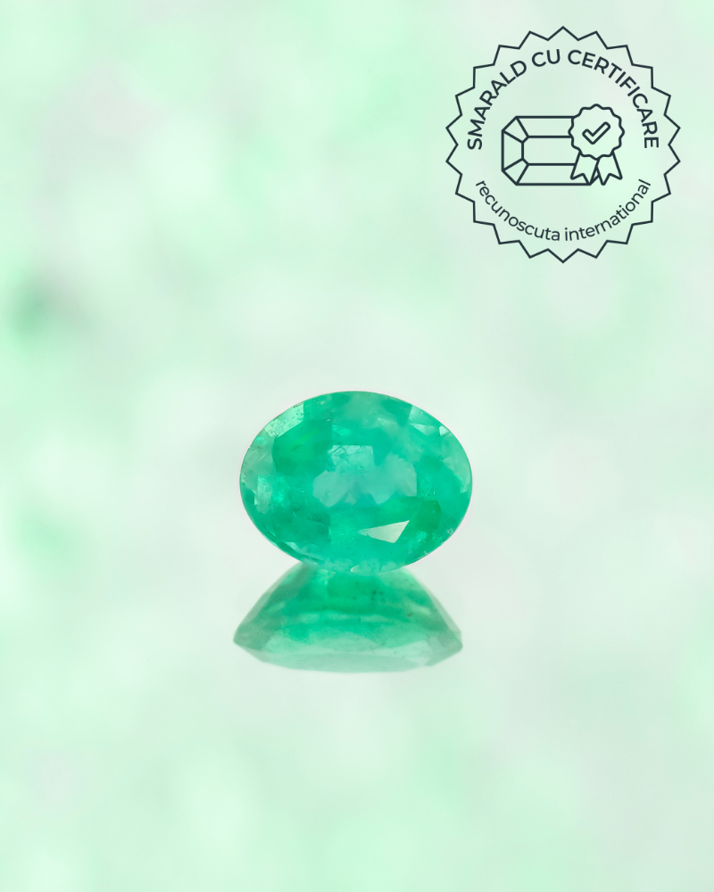 ESMERALDA este un smarald natural de aproape 2 ct, cu o nuanta intensa de verde pur, luminoasa si vie – exact culoarea care a facut smaraldul celebru in cultura bijuteriilor fine. Ovala si armonios proportionata, piatra dezvaluie acea frumusete naturala caracteristica smaraldelor autentice: adancimi translucide, accente laptoase, mici incluziuni (denumite poetic “jardins”) care spun povestea formarii sale in roca, cu milioane de ani in urma.