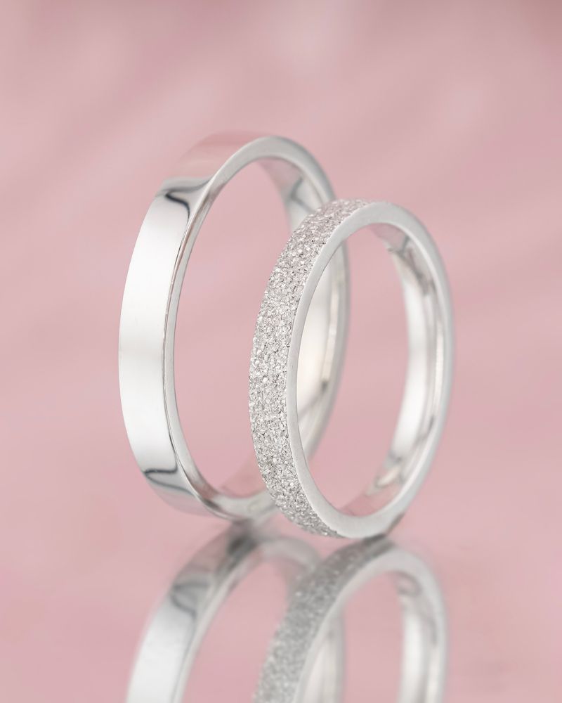 In perechea BETTER THAN DIAMONDS, verigheta de dama are o textura diamantata, un finisaj care arata de parca s-ar juca pe degetul tau zeci de diamante mici, montate unul langa altul.