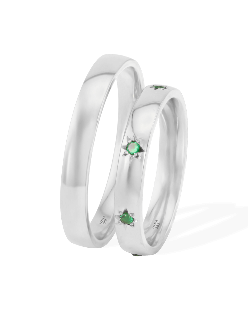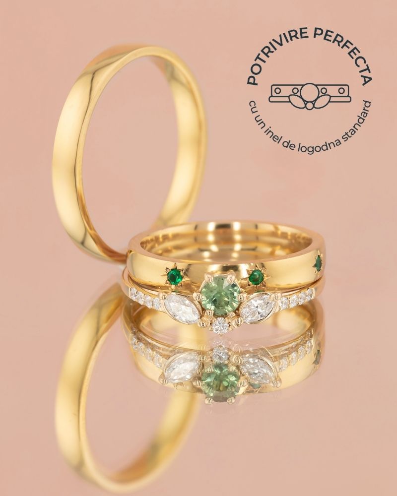 Modelul de dama este decorat cu sapte Smaralde Naturale, asezate ca o constelatie ce marcheaza etape ale calatoriei voastre impreuna: speranta, curaj, incredere, protectie, renastere, evolutie si iubire neconditionata.