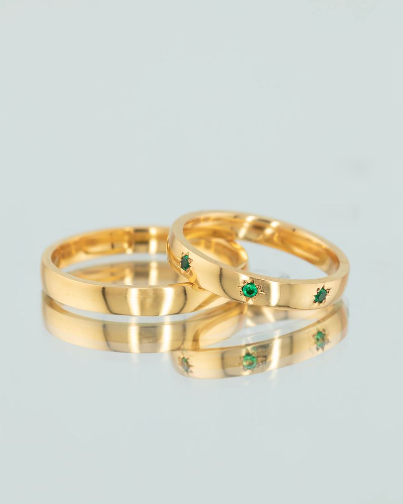 Verighete TO THE STARS cu 7 Smaralde Naturale, Aur Galben 14K