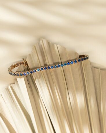 Bratara Tennis Unicat BLUE VELVET cu 56 de Safire Naturale Albastre, Aur Galben 14K