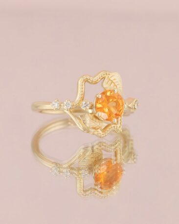 Inel Unicat FLAME OF LOVE cu Spessartit (Granat Mandarin) si Diamante Naturale, Aur Galben 14K
