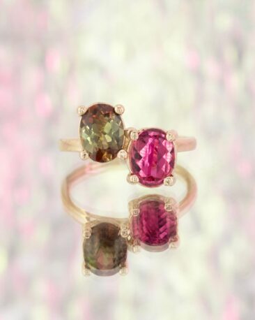 Inel Unicat CONVERSATION STARTER cu Andaluzit si Turmalina Naturala, Aur Galben 14K