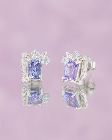 Cercei Unicat REACH FOR THE SKY cu Tanzanite, Acvamarine si Diamante Naturale, Aur Alb 14K