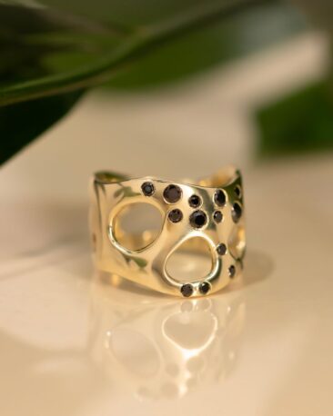Inel Unicat BACK FROM THE FUTURE cu Diamante Naturale Negre, Aur Galben 14K