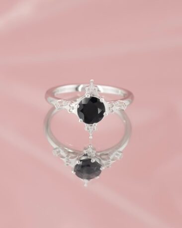 Inel Unicat CELTIC NIGHT cu Safir Negru Natural, Aur Alb 14K