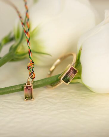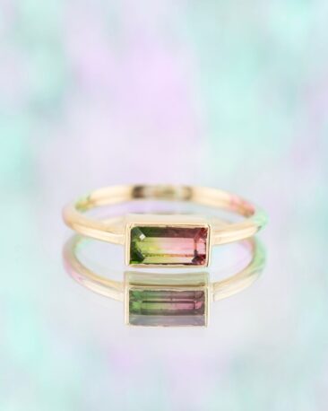 Inel Unicat FRESHNESS cu Turmalina Watermelon Naturala, Aur Galben 14K
