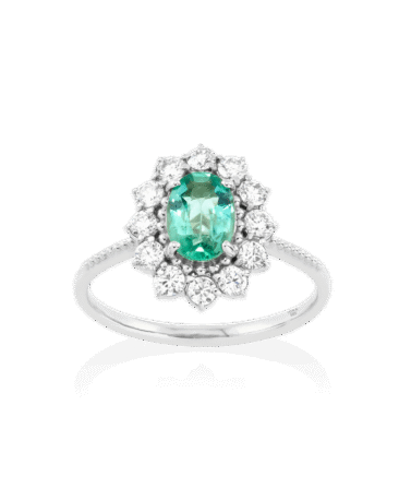 Inel de logodna ZEMIRA cu Smarald Natural si Diamante Naturale, Aur Alb 14K