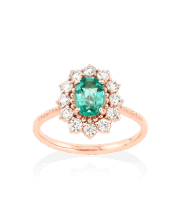 Inel de logodna ZEMIRA cu Smarald Natural si Diamante Naturale, Aur Roz 14K