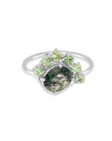 WILD PEACOCK este un inel ce poarta amprenta libertatii si a frumusetii neconventionale. Agata moss, cu incluziunile sale organice, s3.100 lei -